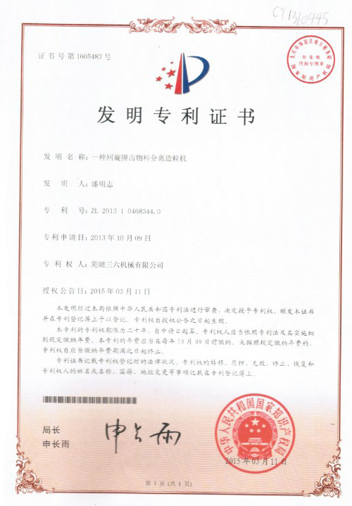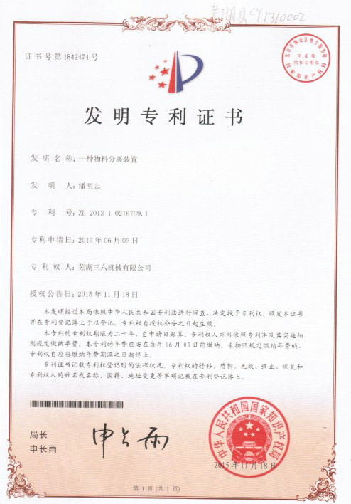 • 發明專利證書